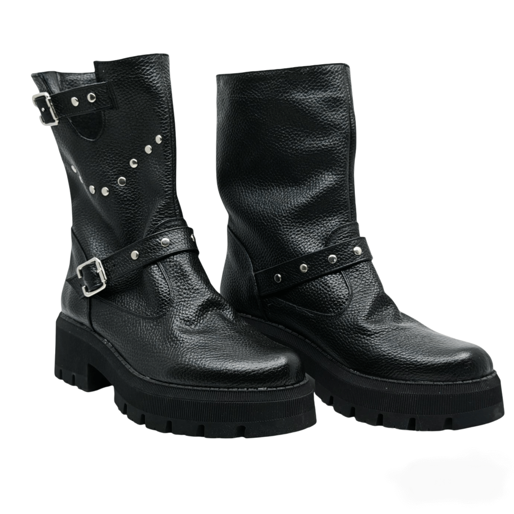 Ghete damă din piele naturală 100%, model Urban Look tip combat boots – realizate artizanal în România.
